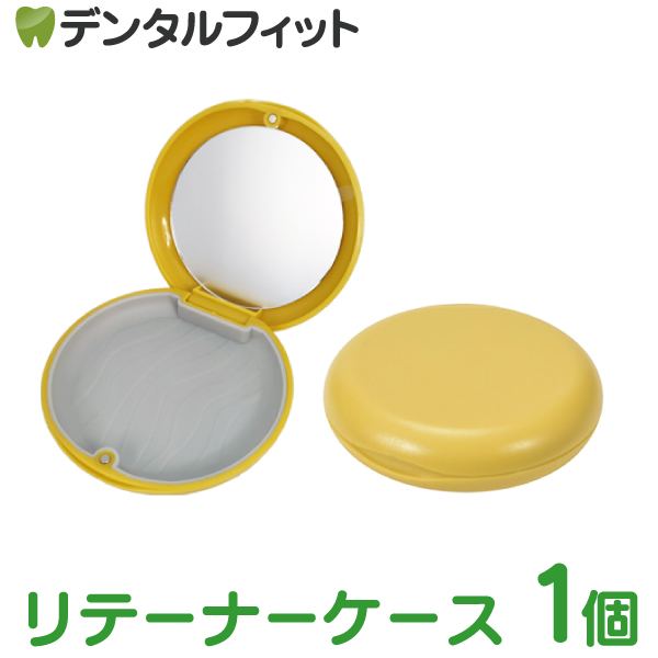 リテーナーケース イエロー 1個 ミラー付き マグネット式 軽量 コンパクト(メール便6点まで)