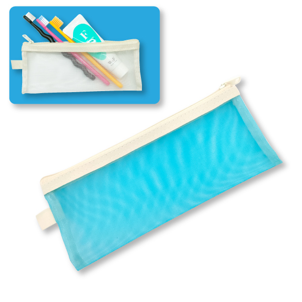 メッシュ歯ブラシポーチ ブルー 1個 スライダーバッグ 小物入れ 携帯用 歯ブラシケース(メール便5点まで)
