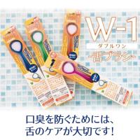 舌ブラシダブルワン「W-1」は舌面にやさしい両面が使える新タイプ。食べかすや舌苔をかきださずにからめるから、ブラシについた汚れが目で確認できます。