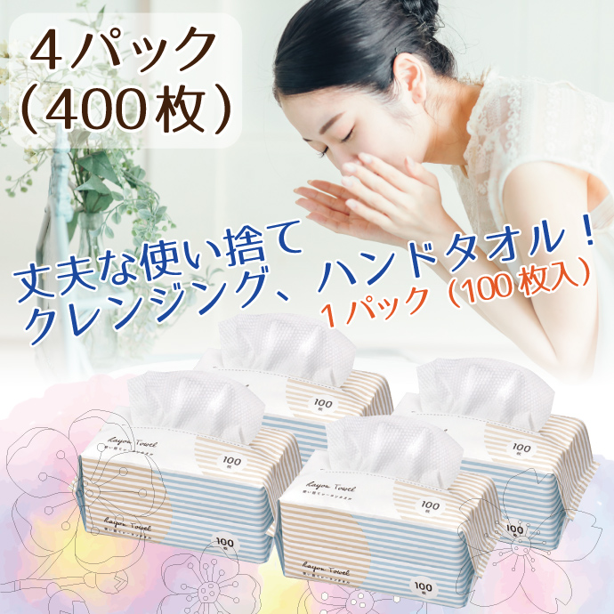 【送料無料】使い捨て レーヨン タオル 100枚入 4パックセット 計400枚(厚手エンボスタイプ)