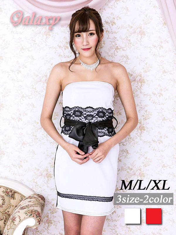レース サテン リボン ストレッチ ミニ ベアワンピ キャバワンピ ナイトドレス ラウンジ パーティー 二次会 お呼ばれ 大きいサイズ