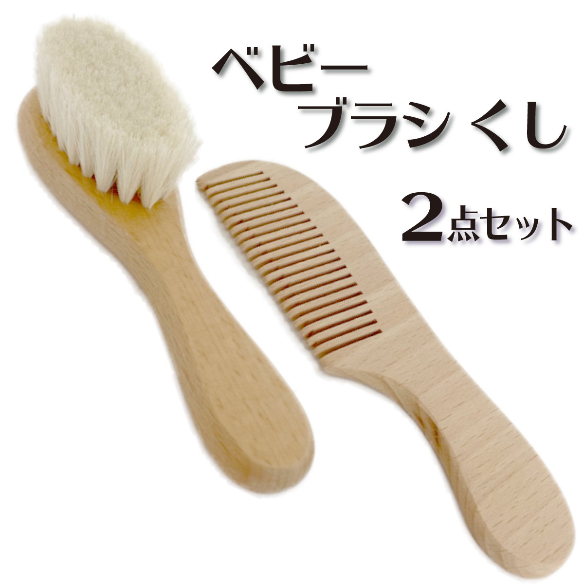 ベビー ブラシ くし ベビー用 赤ちゃん ヘアブラシ ベビーブラシ くし コーム 山羊の毛 ヤギ やぎ 出産祝い 新生児 ブラシ コーム 2点セット