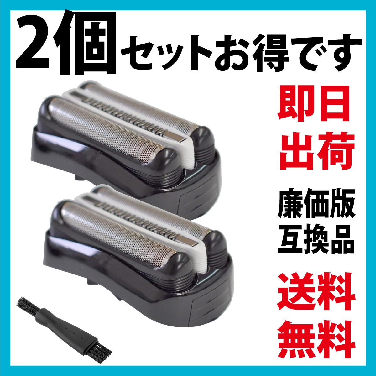 ブラウン 互換替刃 廉価版 32B (F/C32B F/C32B-5 F/C32B-6) 2個セット 網刃+内刃セット 一体型カセット ブラック BRAUN 掃除ブラシ付