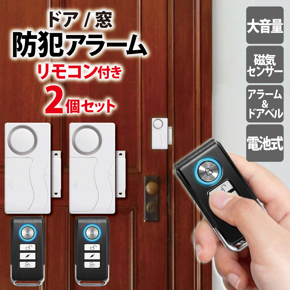 防犯アラーム リモコン付き 2個セットドア 窓 開閉センサー 磁気センサー 大音量 電池式 防犯ベル 防犯ブザー泥棒 窃盗対策 小型 侵入防止 警報機