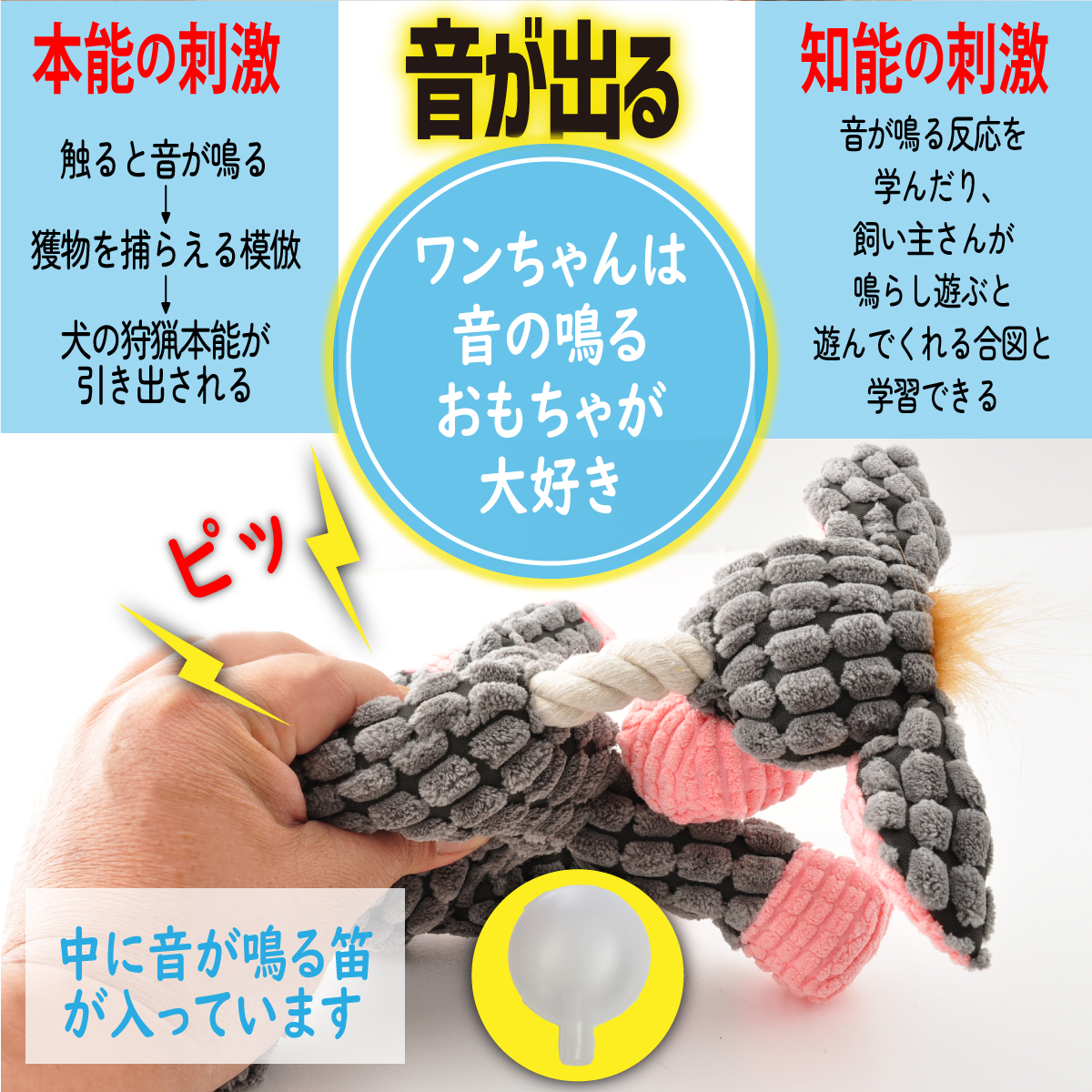 噛むと「ピッ!ピッ!」と内蔵の笛の音がなり、