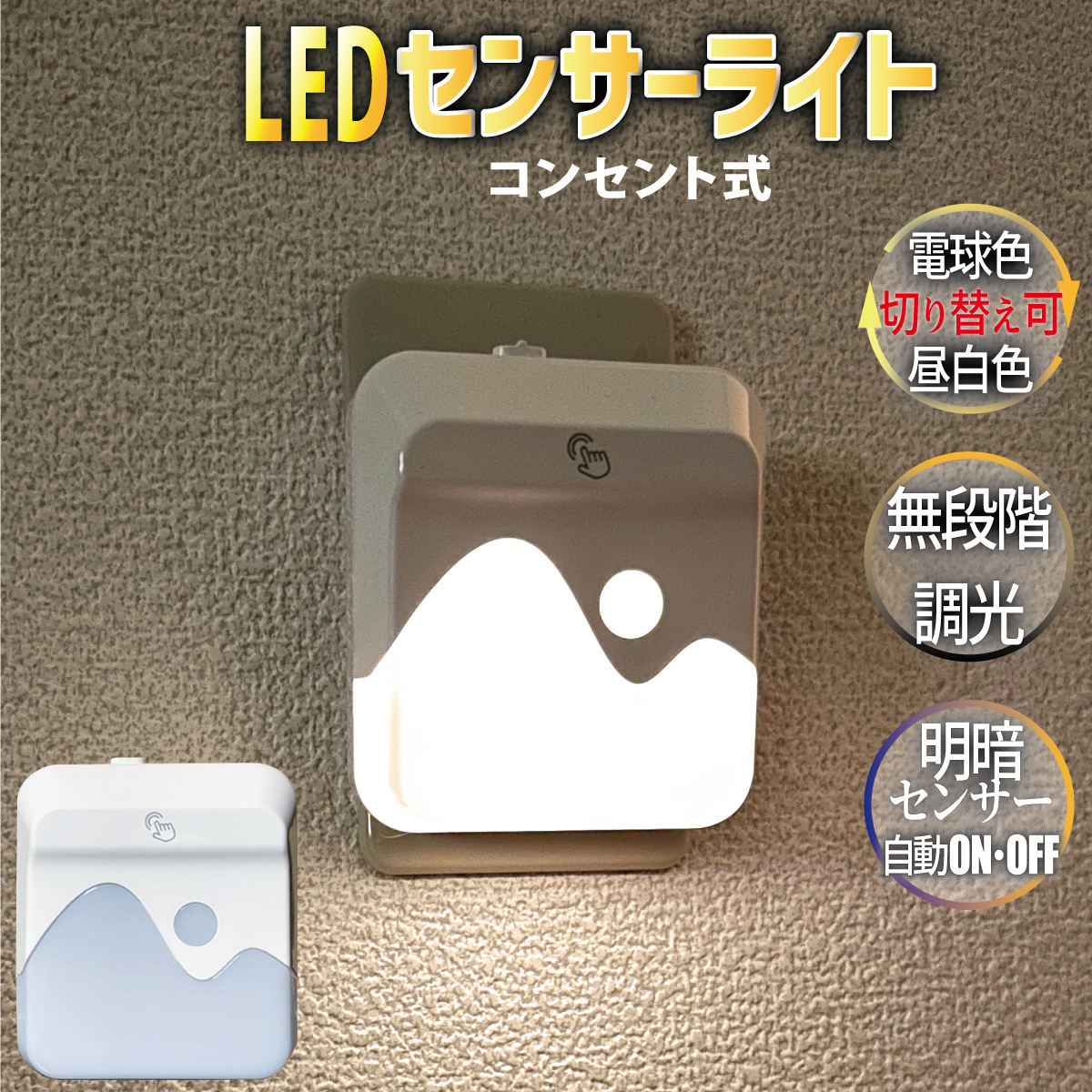 ●点灯色は真ん中のタッチセンサーで電球色と昼白色の切替が可能。