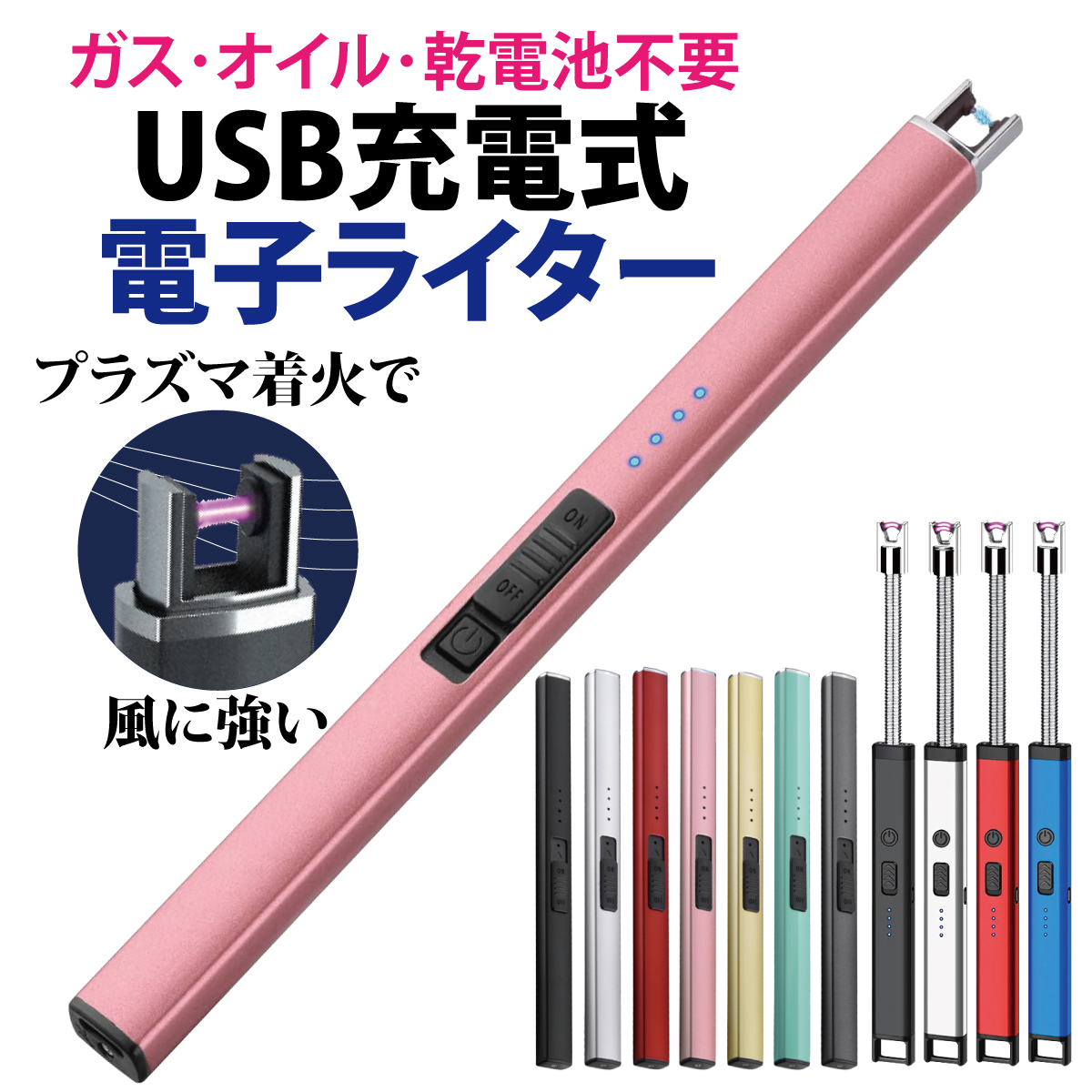 電子ライター USB 充電式 プラズマライター アークライター USBライター 曲がるネック 長め ロング フレキシブル ネック LEDライト付