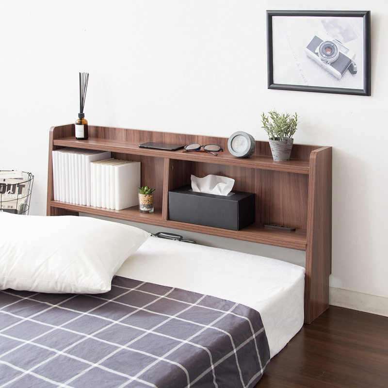 そんな方にオススメなのがこちらのヘッドボード。枕元に置いておきたいものをまとめて収納できて便利です。