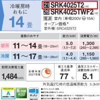 SRK4025T2-W 三菱重工 ビーバーエアコンTシリーズ ルームエアコン 4.0kW 単相200V 主に14畳用 ファインスノー 時間指定不可