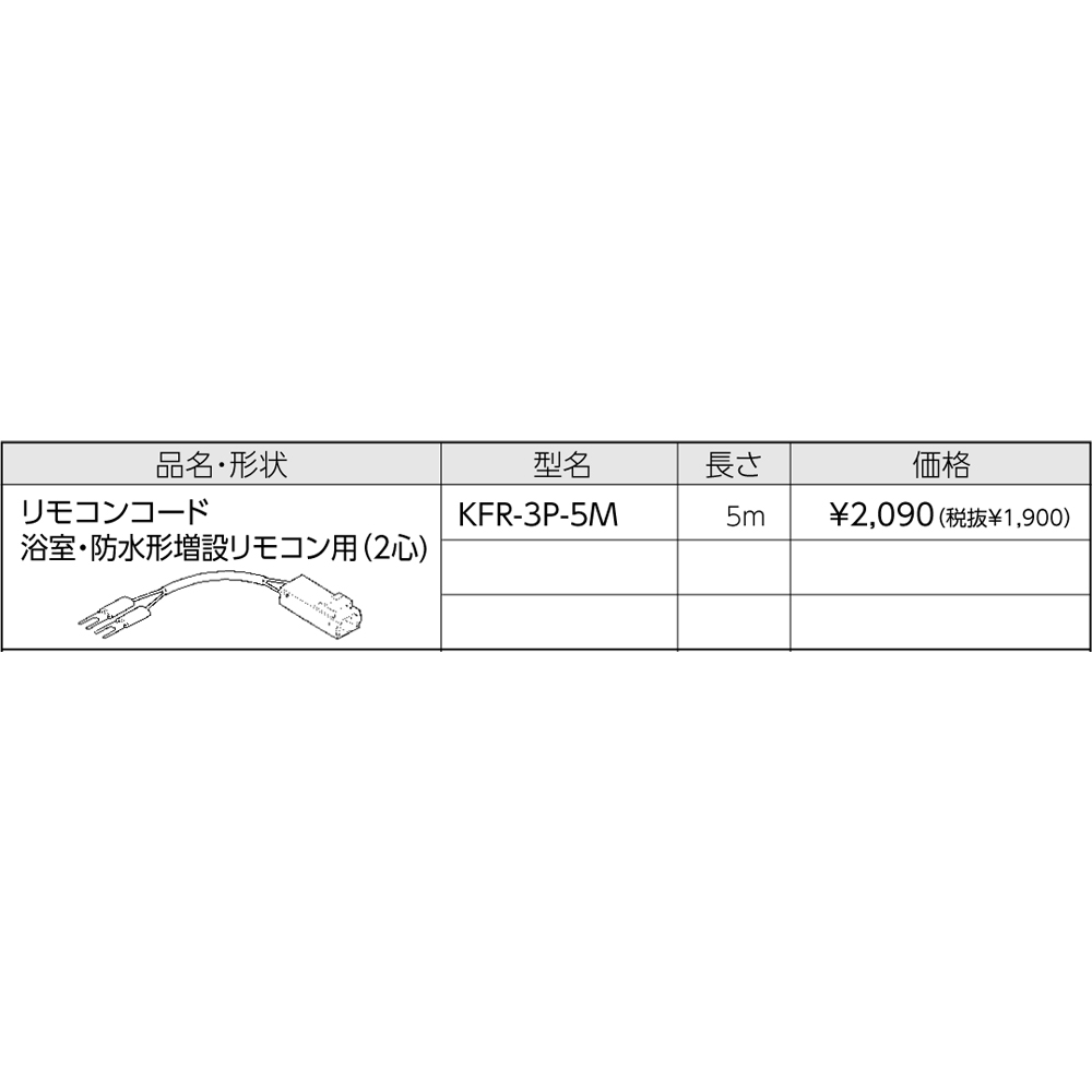 【給湯機本体と同時注文】メーカー直送 代引不可 リモコンコード 5m 長府製作所 リモコン関連部材 給湯機器関連部材 KFR-3P-5M CHOFU