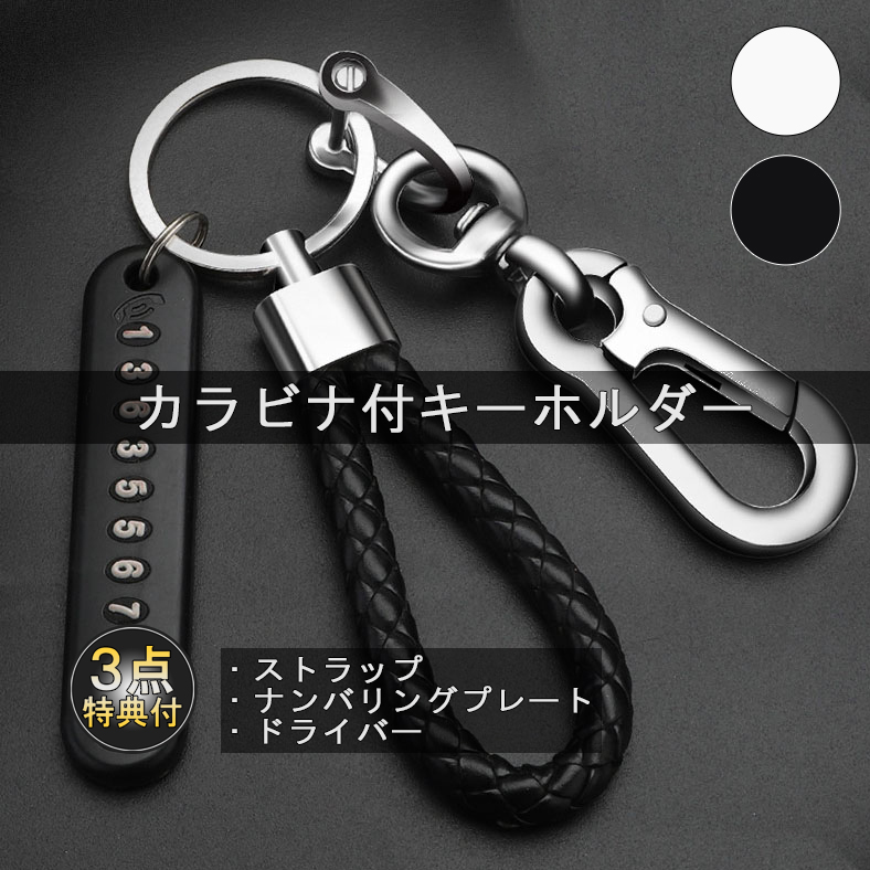 キーホルダー キーリング カラビナ ストラップ 編み込み Dリング ナンバリング プレート シンプル おしゃれ