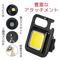 500円玉大サイズでMAX500ルーメンの明るさ。アタッチメントも豊富だからアウトドアや防災グッズとしての適性も!●高輝度なCOBライト次世代COBライトは、照明面積を大幅に増やし、同時にグレアを避けることができます。高輝度500ルーメンで、照射距離は最大50メートルぐらいです。より少ない電力で非常に明るい光を提供することができるので、夜間や暗所での作業をサポートします。●実用性の高い4種点灯モードワンタッチでCOB60%通常輝度・COB30%低輝度・点滅モードから自由に切り替えることができます。長押し(2-3秒)するとさらに強光モードにも!様々なニーズを満たすことができる便利グッズです。●コンパクト&軽量本体寸法は6*4.4cm、重さはわずか38グラム、超軽量で持ち運びやすいです。ポケットに入るコンパクトなデザインでアウトドアやキャンプに最適です。500mAh大容量電池で、最大3時間まで点灯できます。しかもUSB-Type-C・充電ケーブル付き、速やかに充電ができます。●アタッチメント豊富簡単に着脱が出来るカラビナ式なので、テントから吊り下げたり、作業用のバッグやベルトに掛けることもできます。裏面に強力マグネット付き、鉄素材にしっかり固定でき、作業中に手を解放できます。本体下部には三脚専用ネジ穴付きで、色んなニーズに応じて、自由にお使いいただけます。おまけに栓抜きも搭載、手軽に栓を抜くことができます。●様々なシーンで大活躍屋外作業・アウトドアなどの電源が無いところはもちろん、電気・建物・水道などに設備の点検、工事現場、メンテナンス、キャンプ・BBQ、夜釣りなど、幅広く手軽に利用できます。地震・津波・台風など自然災害の防災対策として、停電時や緊急時にも最適です。
