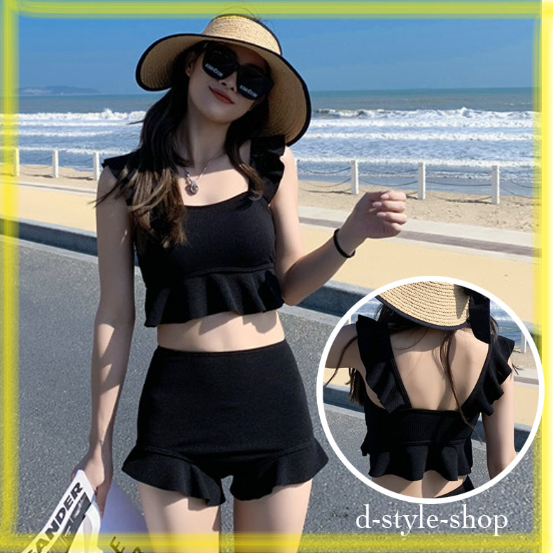 レディス 水着 フリル セパレート水着 体型カバー タンキニ ハイウエスト