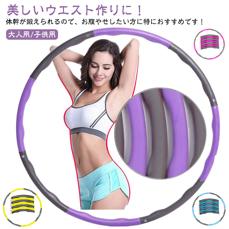 | 大人用/子供用 美しいウエスト作りに!体幹が鍛えられるので、お腹やせしたい方に特におすすめです! ソフトスポンジ素材なので痛くなりにくく、大きすぎない凹凸がお腹周りをやさしく刺激します。 短時間で効率的なカロリー消費が可能で、テレビや音楽を楽しみながら、いつでもどこでも気軽にダイエットできます。 「簡単組み立て・持ち運び便利なデザイン」 6/7/8本のジョイント式パーツで、簡単に組み立てや分解が可能。 コンパクトに収納できるため、家庭はもちろん、職場やジム、公園など、あらゆる場所で使用でき便利です。 「パーツの本数を変えて手軽に子供用から大人用まで対応」 パーツの本数で直径が変わり、 6本にすれば小さく子ども用に、パーツ7本は大人の初心者用、 パーツ8本は本格的なダイエット用などと自由に使い分けることができます。 | |