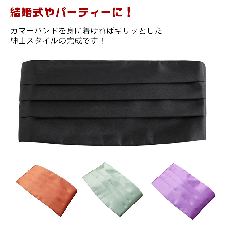 | 結婚式やパーティーに! カマーバンドを身に着ければキリッとした紳士スタイルの完成です! カラーは落ち着いたワイン?シルバー?ブラックをご用意いたしました。 結婚式やパーティーにおすすめ!カマーバンドはタキシードを一段とファッショナブルに仕上げてくれるフォーマルアイテムです。 スーツをすっきりと着こなせるからダンスパーティにおすすめ!! タンゴ、ワルツ…スタンダードを踊るならぜひ。 | |