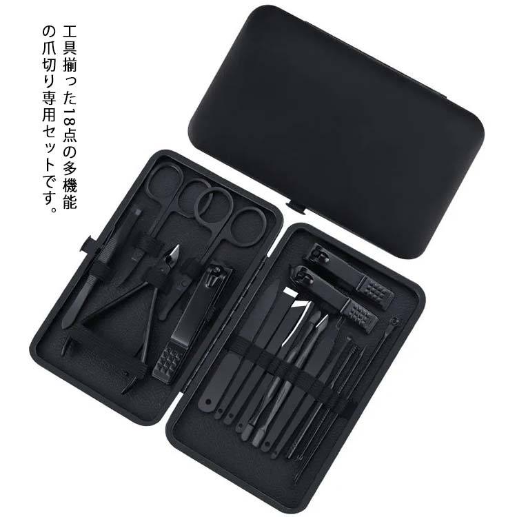 | 工具揃った18点の多機能の爪切り専用セットです。 爪割れ、硬い爪、分厚くなった爪等のお困りを解決します。 先端部分は薄く鋭利に仕上げで、簡単で快速にご希望形を出来ます。 爪めになる口刃で、爪に合わせて細かいなところにもしっかり入り込みます。 高密度ステンレスを採用し、耐久性は高く、防錆防湿ので消毒や清潔も便利です。 収納ケースが付き、コンパクトで旅行や出張にも携帯便利です。 高級感溢れるPUレザーなので、自分用も贈り物としても非常に適しています。 | |