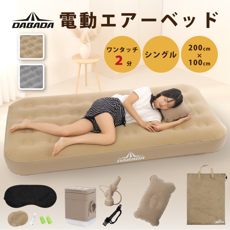 付属品(セット内容):専用収納袋/電動ポンプ/マルチノズル/Type-C充電ケーブル/同色の補修キット/耳栓×1セット/アイマスク×1/エアピロー×1(※カラーはベージュのみ)