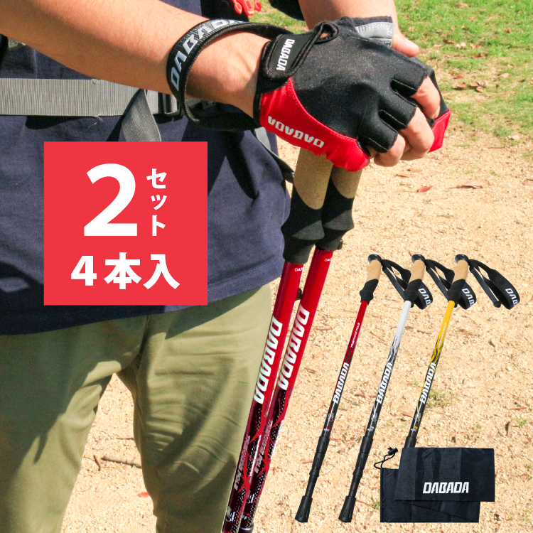 お買得2セット トレッキングポール 超軽量カーボン製【軽量175g 最少61cm】収納袋付き アンチショック機能付
