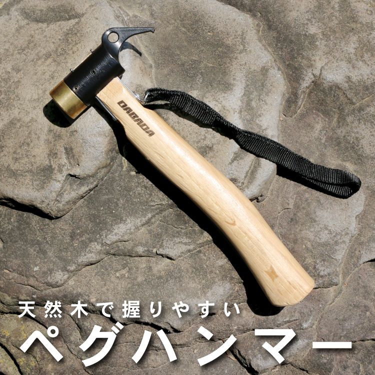 ペグハンマー 真鍮ヘッド ストラップ付 収納袋付き テントハンマー キャンプハンマー テント設営 タープ設営