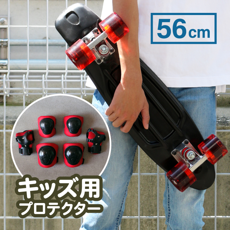 スケートボード キッズ 56cm ペニー ペニーボード ミニクルーザーボード 子供用プロテクター3点セット付き 軽量