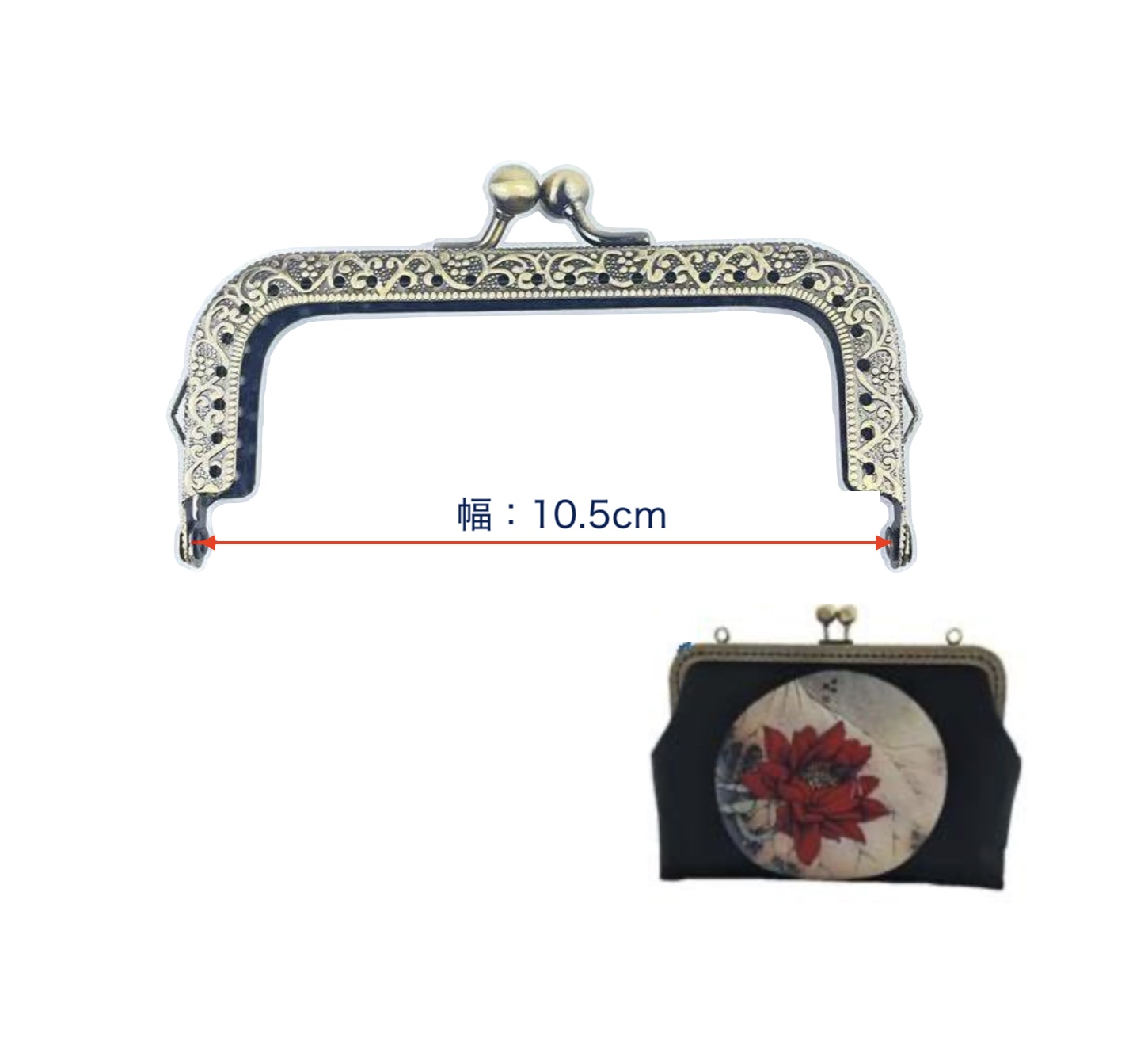 口金 (約幅10.5cm)古銅色 がま口 口金 角型 半円形 両カン付 縫い付けタイプ