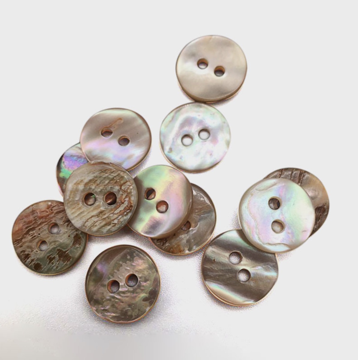 貝を使って加工し作られた2穴の貝ボタンです。