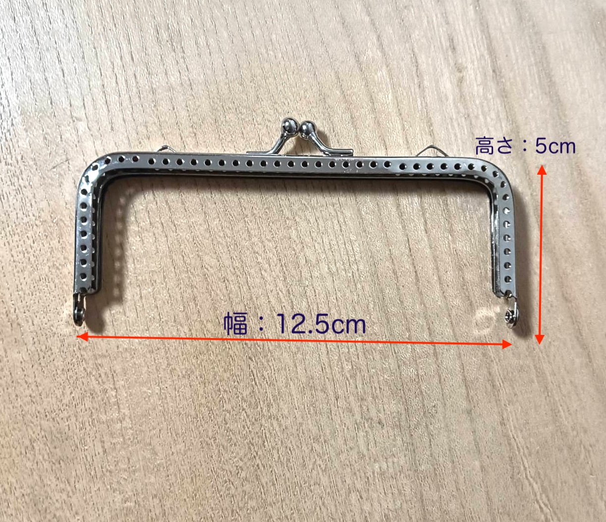 口金 (約幅12.5cm×深さ5cm)シルバー がま口 口金 角型 両カン付 縫い付けタイプ