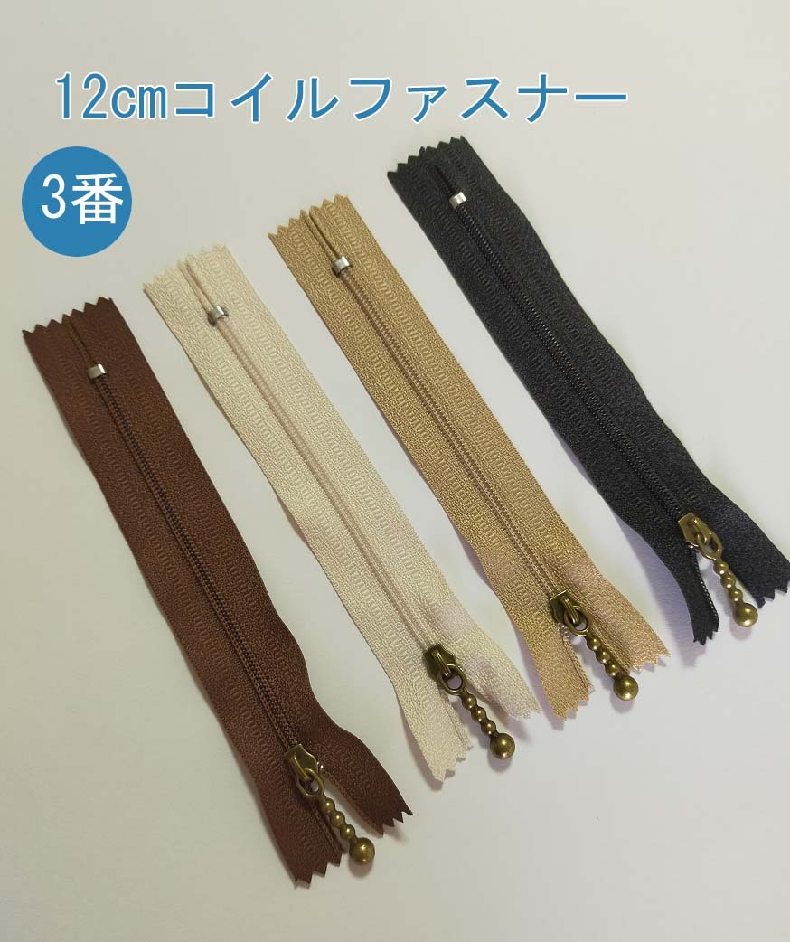 コイルファスナー 玉付きスライダー 止め 12cm 4色 ファスナー 手芸 手芸用品 手作り ハンドメイド クラフト用品 「メール便OK」