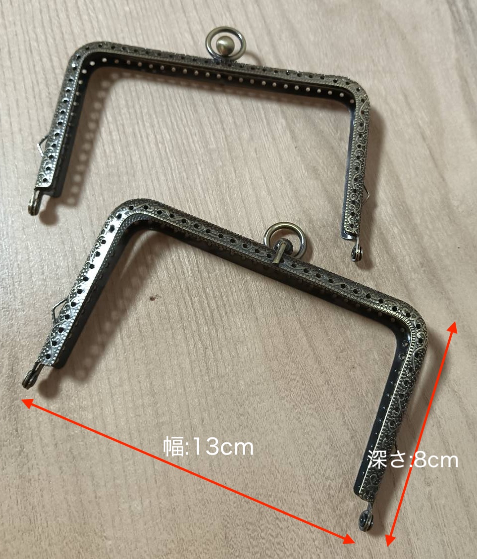 口金 (幅:約13cm 深さ:約8cm)古銅色 がま口 口金 角型 両カン付 縫い付けタイプ
