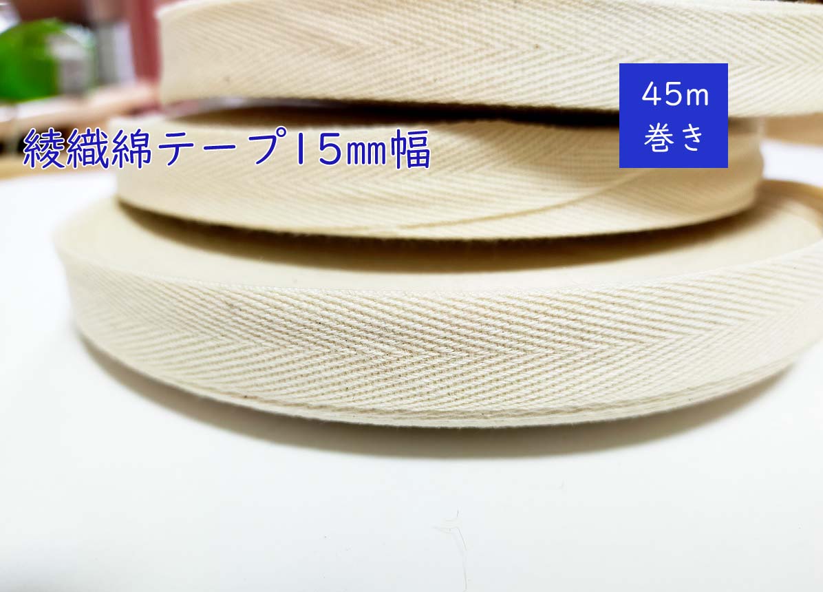 綿テープ 綾織 リボン 幅15mmx45m巻 DIY 手芸材料 生成り 【メール便OK】
