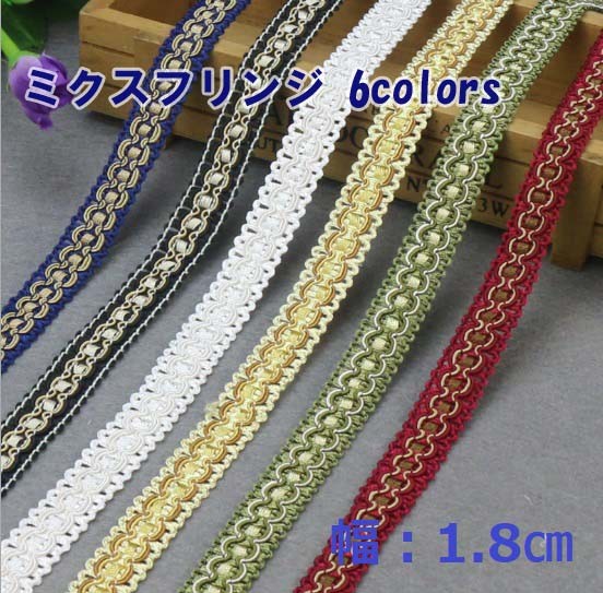 ミクスフリンジ レース リボン 幅1.8cm 1m単位カット売り DIY 手芸材料 6colors【メール便30mまで】