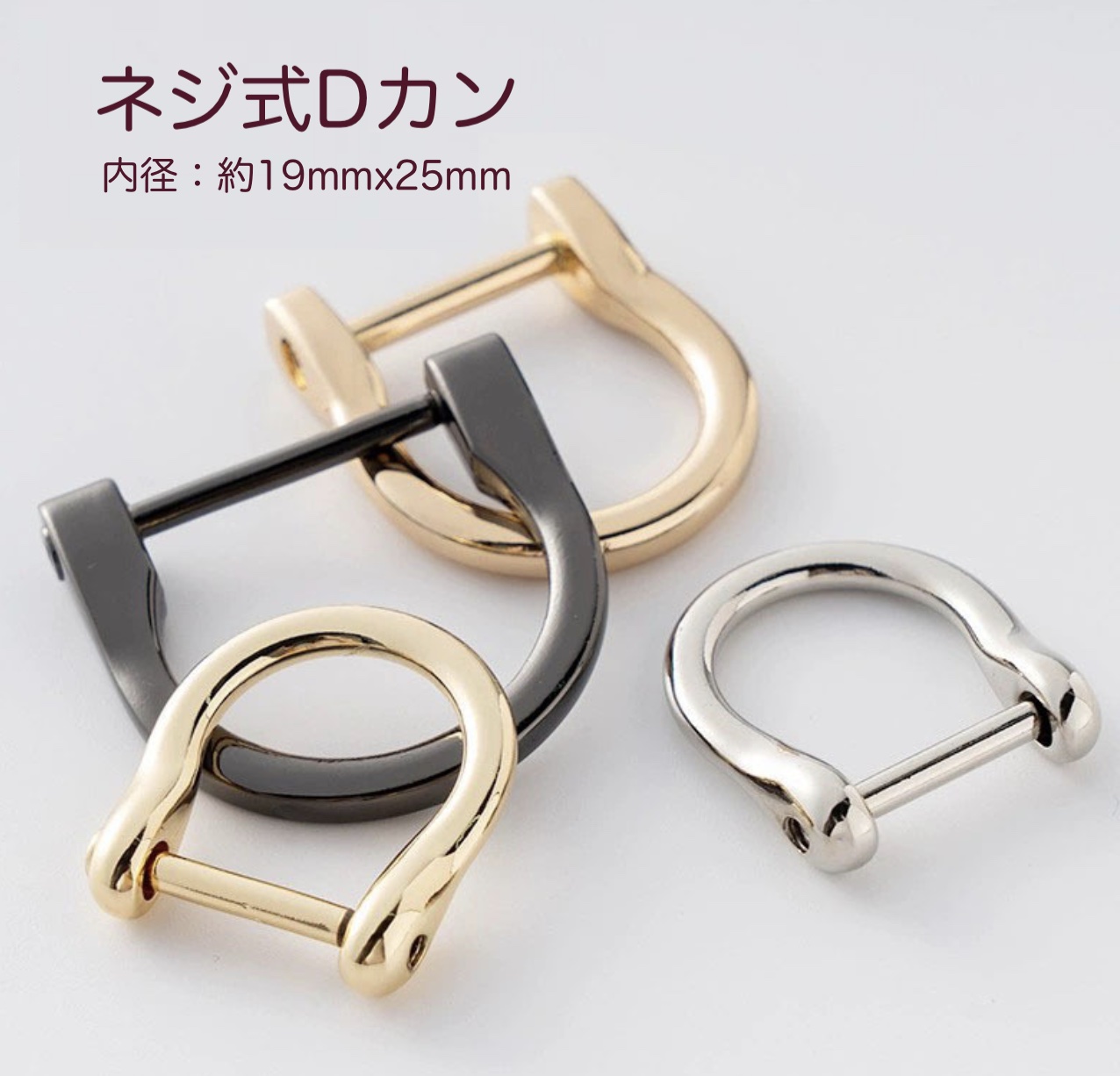 厚みのある上品なシルエットのネジ式Dカン金具です。