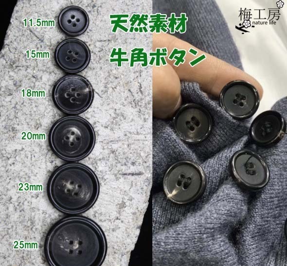 天然素材 水牛ボタン 牛角 ボタン 20mm