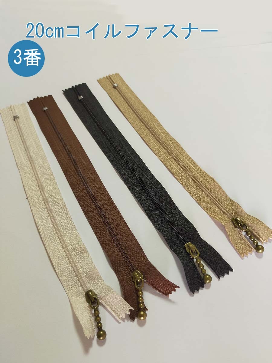 コイルファスナー 玉付きスライダー 止め 20cm 4色 ファスナー 手芸 手芸用品 手作り ハンドメイド クラフト用品 「メール便OK」