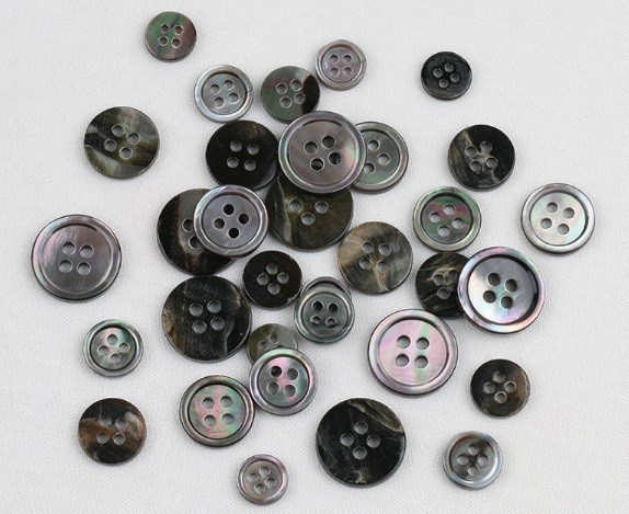 黒蝶貝を使って加工し作られた4つ穴の貝ボタンです。