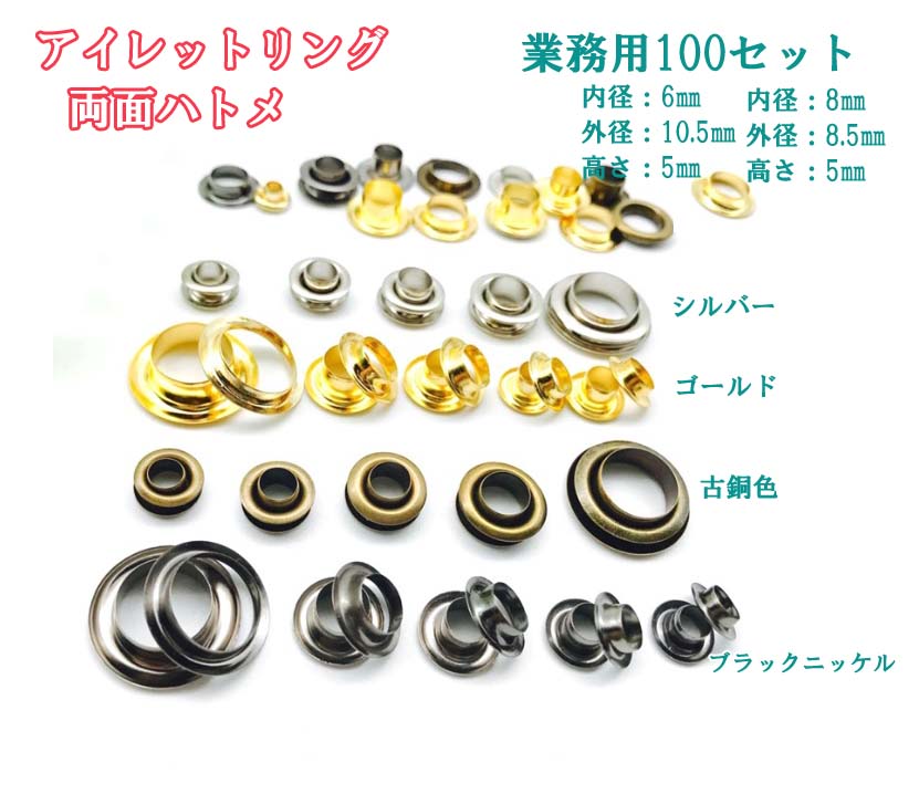 業務用 両面ハトメ アイレット 内径:6mm/8mm 100セット