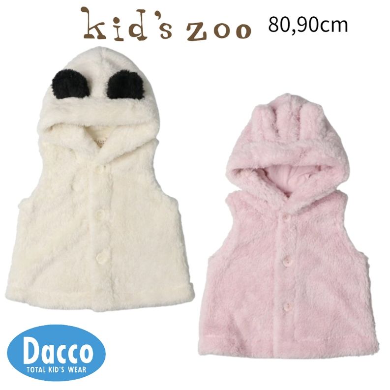 【30%OFF SALE セール】Kid's zoo キッズズー 動物ボアベスト(S/70~80cm)W64210 子供服 女の子 男の子 ベビー 赤ちゃん アウター トップス 2025秋冬