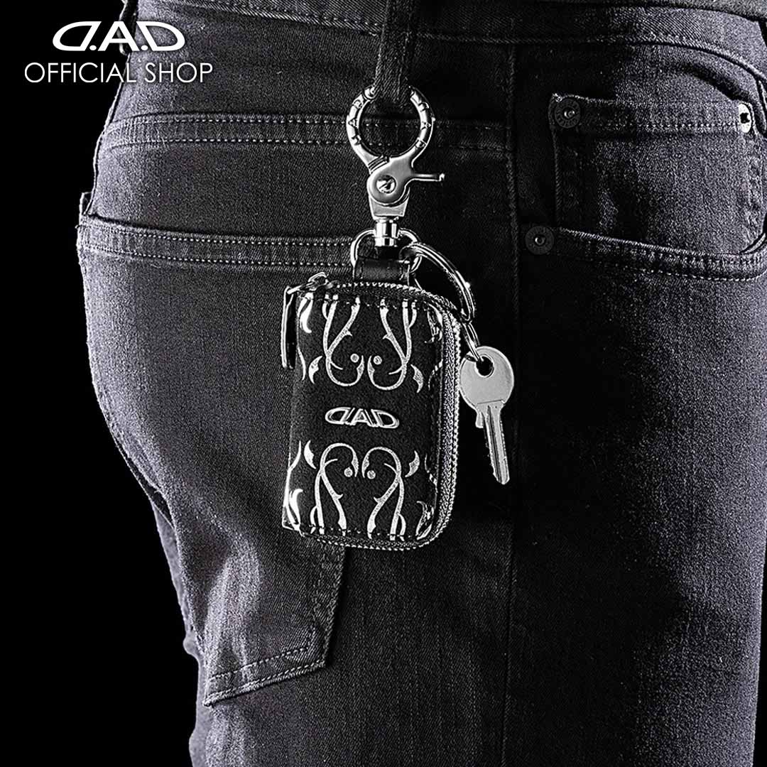 フック部には D.A.D ロゴ入りキーリングがあるので、スマートキー以外の鍵も取付可能。