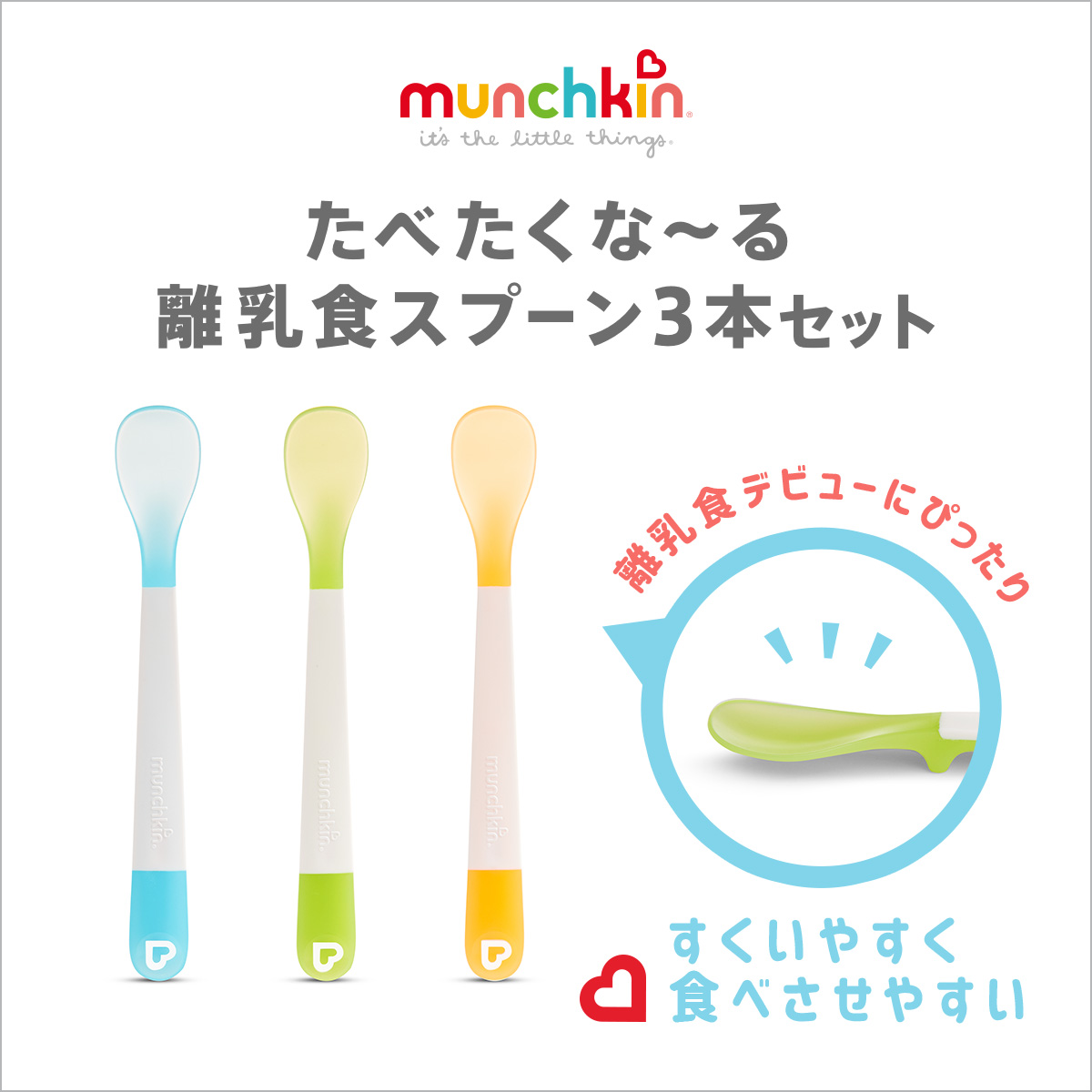 「たべたくな〜る」シリーズの離乳食スプーン3本セット。