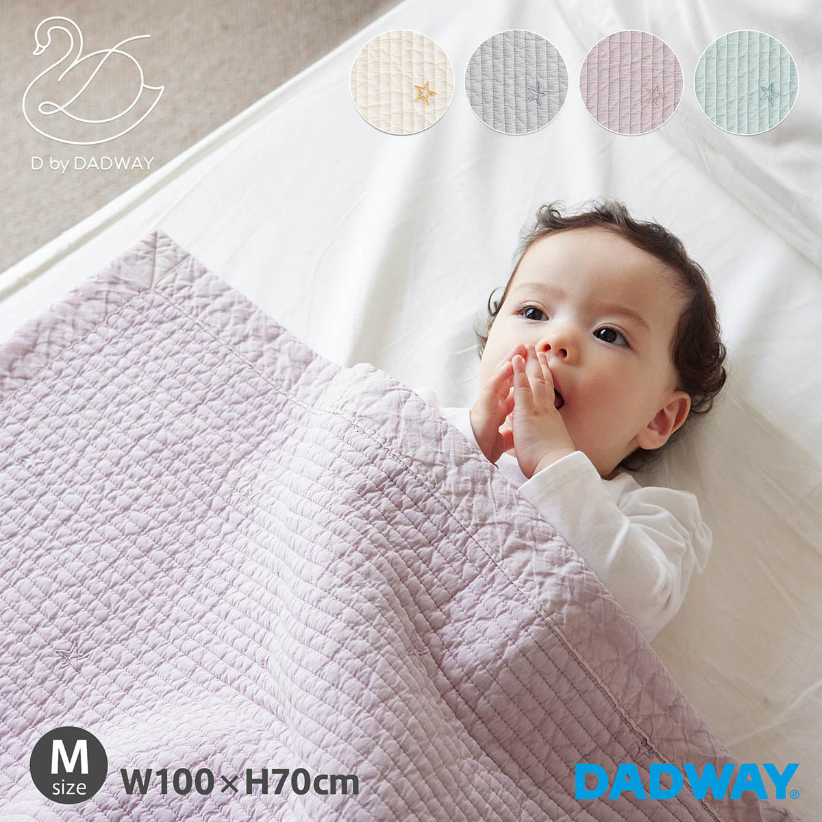 Mサイズはベビーベッドに敷いたり、肌掛けにもちょうど良いサイズです。