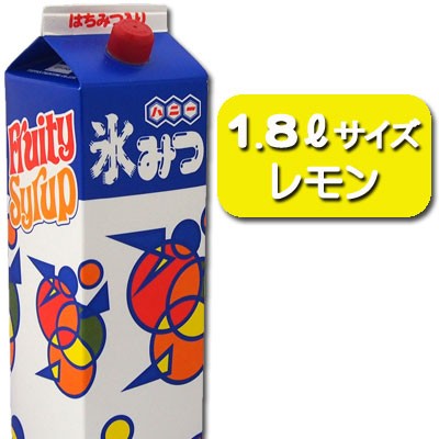 | 名称 | 氷みつ 1.8リットル レモン | | メーカー | 株式会社ハニー | | 内容量 | 1.8リットル | | サイズ | 85×85×300mm | | 使用目安 | 350mlカップ使用時:35〜50杯 | | 商品説明 | 色鮮やか!味バラエティ!プロの露店屋さんも使用しているはちみつ入りの甘くておいしい氷みつです!! |