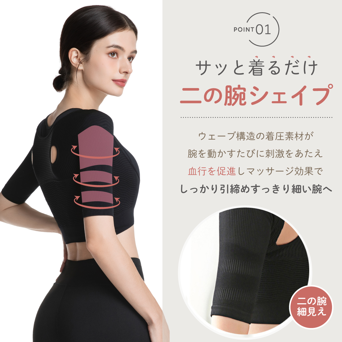 【二の腕 引き締め】加圧インナー構造で二の腕をしっかりホールド。気になる二の腕のたるみを引き締め、すっきり細見えをサポート。