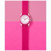 説明:お子さまだけでなく、小振りで軽量、気軽に使えるカジュアルウォッチとして女性にも人気だったキッズに久々の新作が登場。シリコン製ストラップで肌触りがよく、30m防水なので急な雨や梅雨時に濡れても安心です。“All children, except one, grow up.” どんな子供も大人になる、たった一人をのぞいて。 という書き出しで世界中で広く知られる作品「ピーター・パン」のように、みなその昔は皆こどもでした。幼少期の写真を探すと、誰にでも腕時計をした写真がきっと1枚はあるのではないでしょうか?「人生で最初に手に入れた、買ってもらった時計(ファーストウォッチ)がタイメックスだった」という人がアメリカには多く、時計の読み方を学べるように時針に「HOUR」、分針に「MINUTE」と文字が入ったアナログウォッチは人気の高いデザインで、ミニッツマーカーも5,10,15と5分刻みで数えやすくなっています。プレゼントやご褒美として親などから貰える腕時計のプレゼントは子供にとって一生の思い出となり、また大人たちと同じく自分の腕に時計があることで少々鼻が高くなることでしょう。とはいえ、実はタイメックスのキッズウォッチはその可愛い見た目と実用性から、大人たちにも隠れた人気なことは内緒にしておきましょう。そう、どんな大人にも子供心が残っているのです。