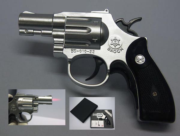 送料450円〜新品 BSリボルバー型ミニターボライター(マットシルバー) 90g 何度も使えるガス再注入式 ピストル型 ガスライター