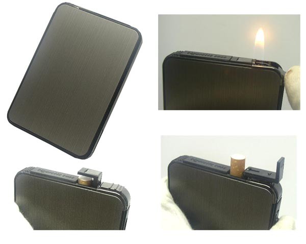 送料180円〜新品 ライター機能付きスライドアップ式コンビシガレットケース(BKガンメタサテン)