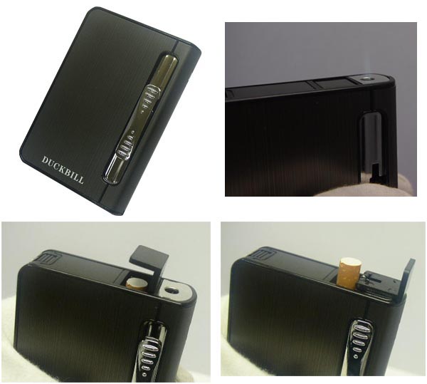 送料270円〜新品 ターボジェットライター機能付きスライドアップ式コンビシガレットケース(BKガンメタサテン)