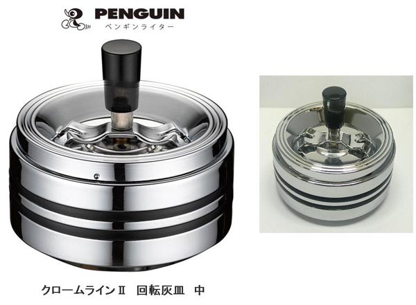 ペンギン社 クローム黒ラインII 回転灰皿中 スチール製