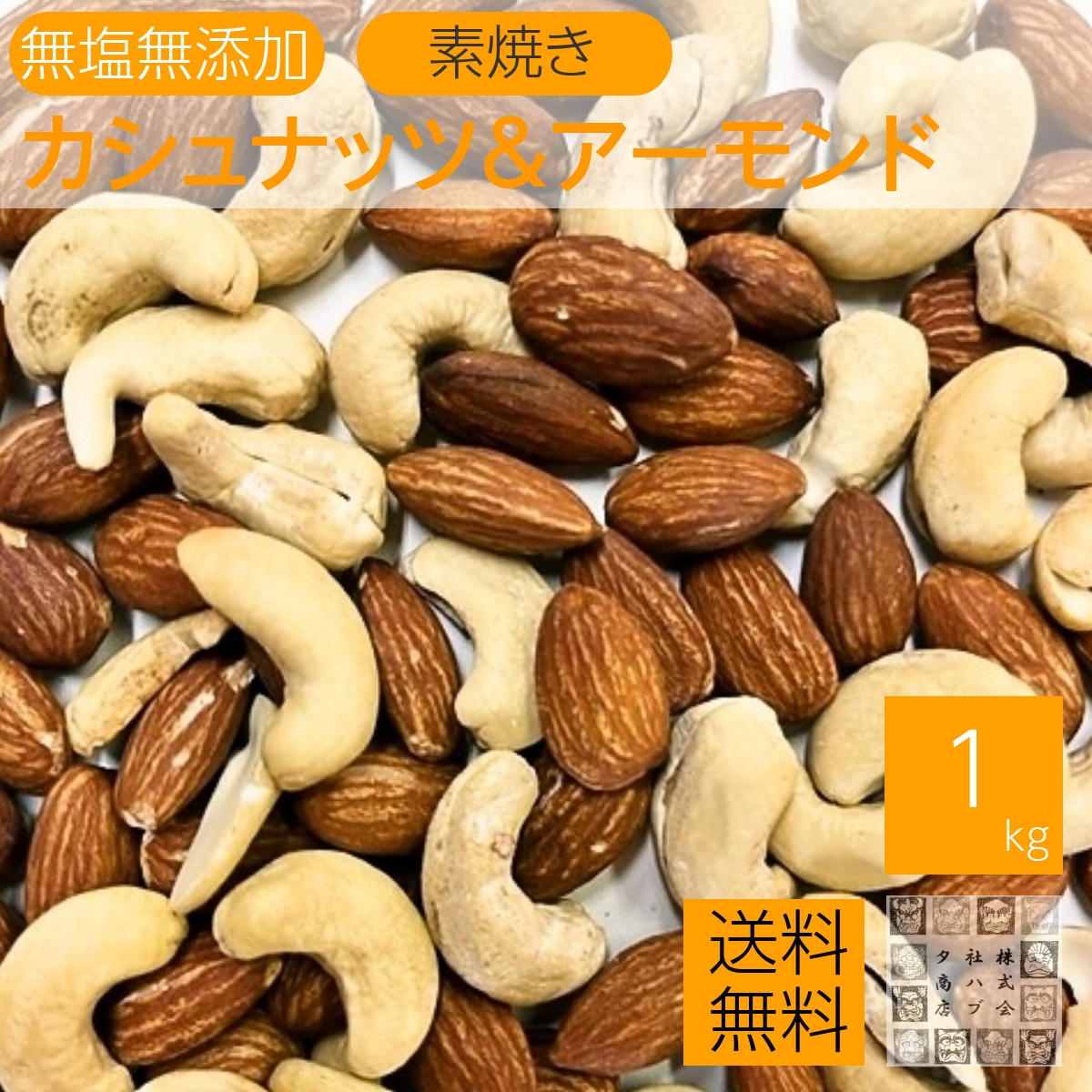 素焼きアーモンド 素焼きカシュナッツ 1kg 2種類ミックスナッツ 無塩 ネコポス便 ポスト投函