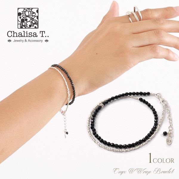 オニキス×カレンシルバーのWラップブレスレット美しい黒が印象的な高級感のあるオニキスのカットビーズと、温かみのあるカレンシルバーを組み合わせた、Wラップブレスレットです。上品なデザイン、カラーリングでスタイルを選ばず、他のアイテムとの重ね付けにもおすすすめです。