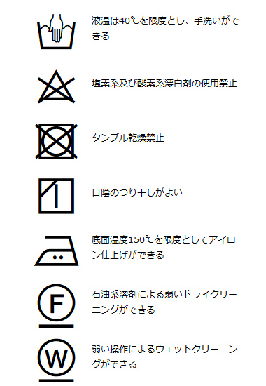 | 洗濯表記 | 詳しくはこちら⇒ |